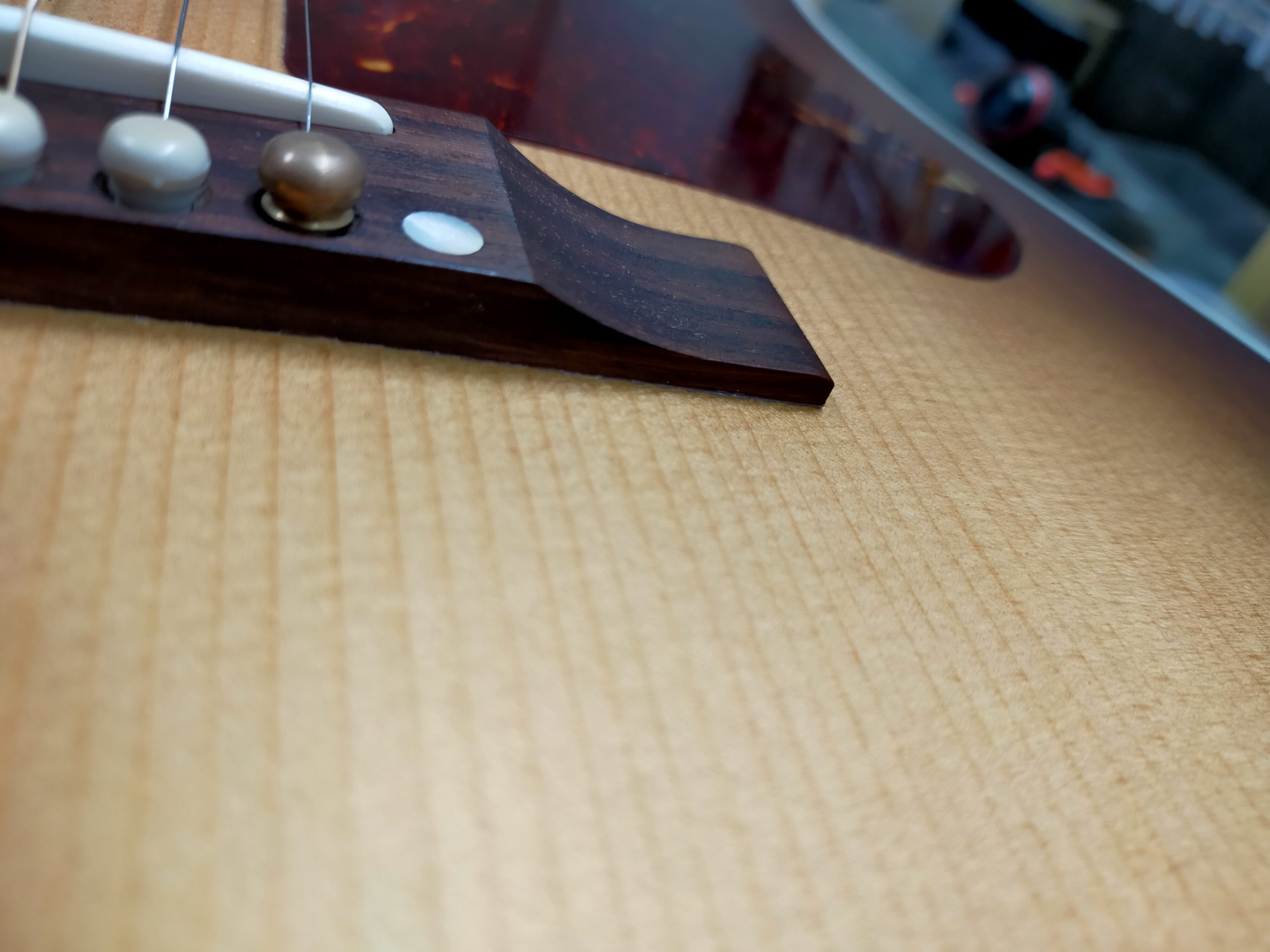 すると、ブリッジ下に塗装が残っている部分がありました。